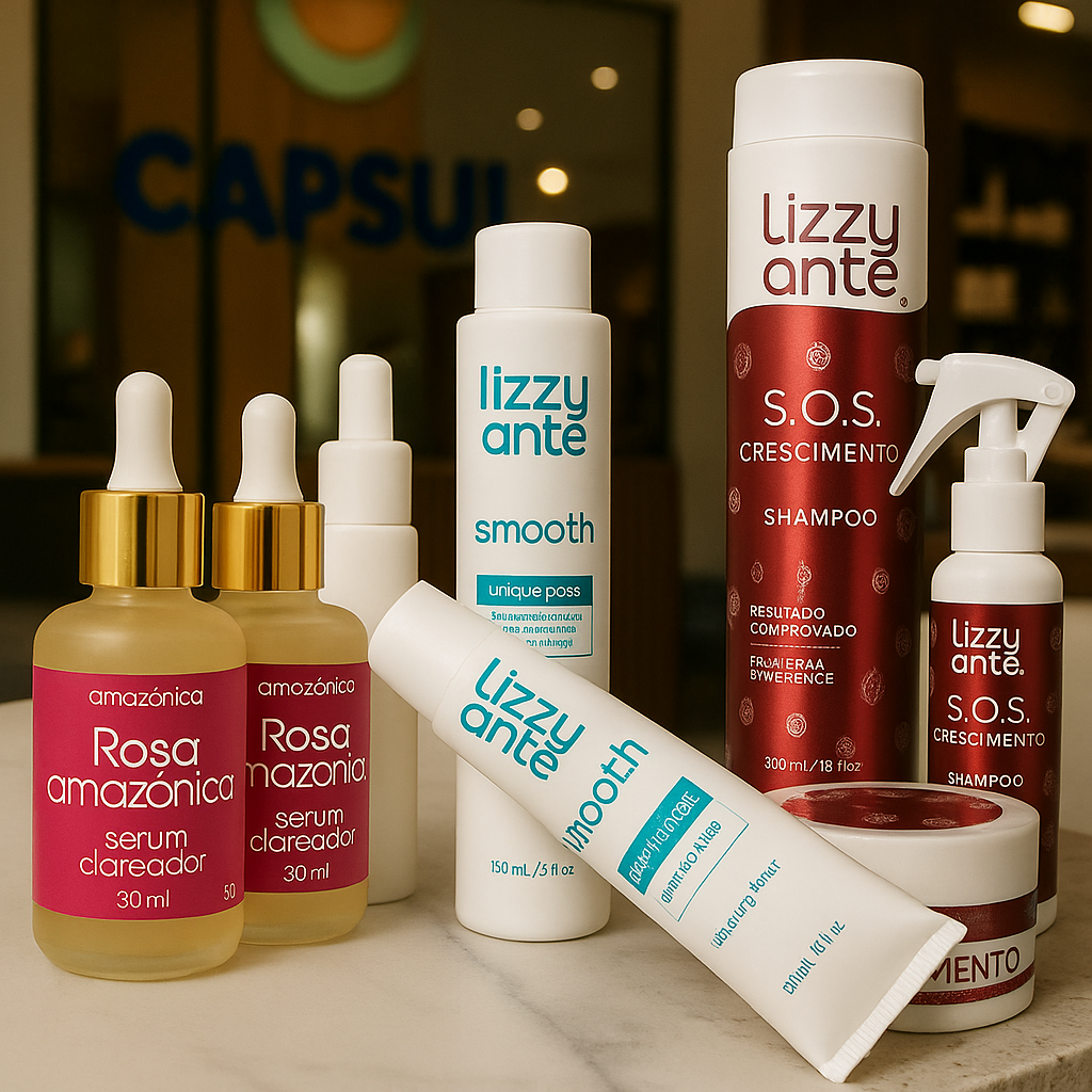 Rosa Amazônica: Sérum clareador que uniformiza o tom da pele e ilumina. Lizzy Ante S.O.S Crescimento: Fortalece os fios, combate a queda e estimula o crescimento capilar. Lizzy Ante Smooth: Alinha, hidrata e deixa os cabelos mais lisos e disciplinados.